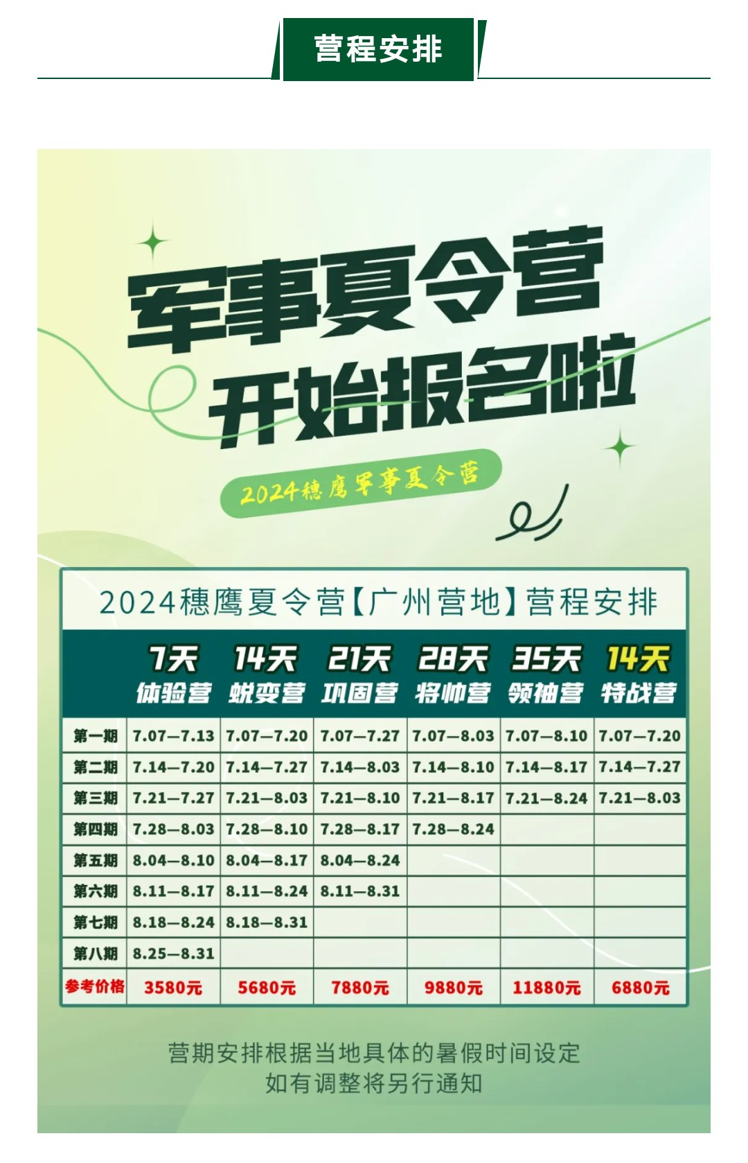 穗鹰·少年军旅夏令营广州营地 | 14天蜕变营日程安排